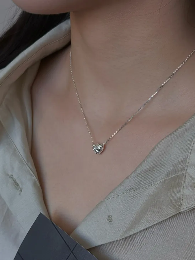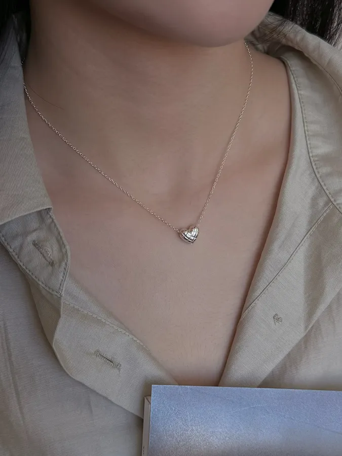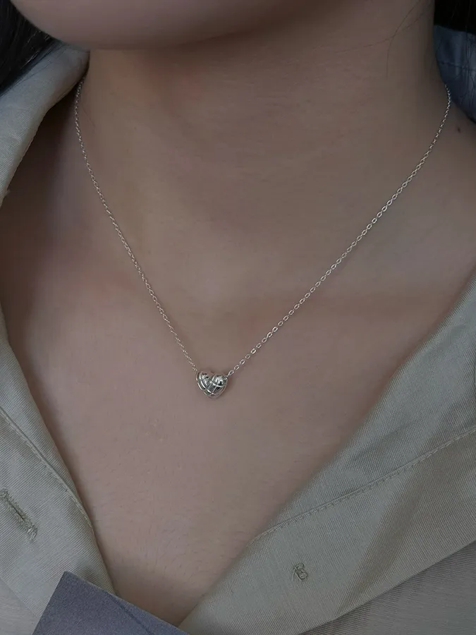 立體心形菠蘿紋|鎖骨項鍊【S925純銀】