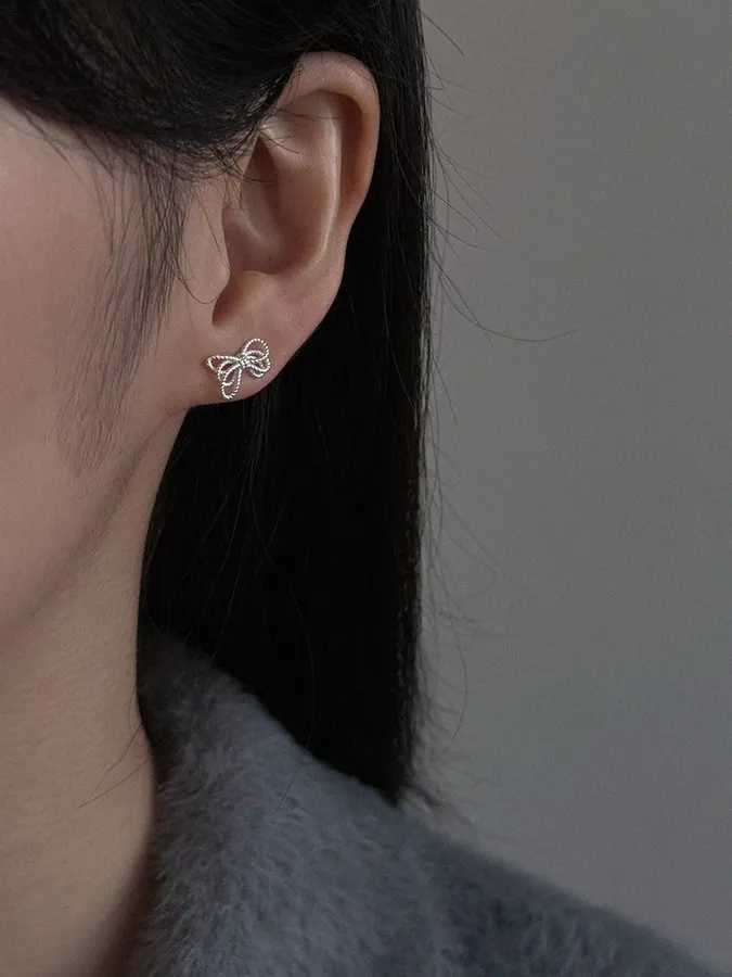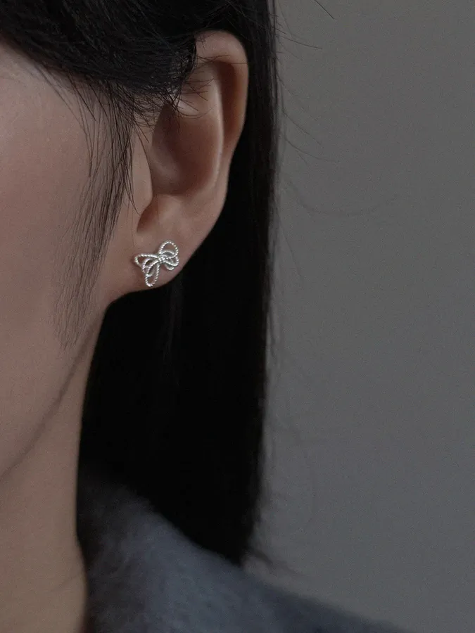 線結蝴蝶結|925銀耳環【S925純銀】