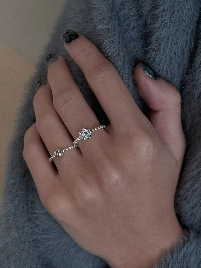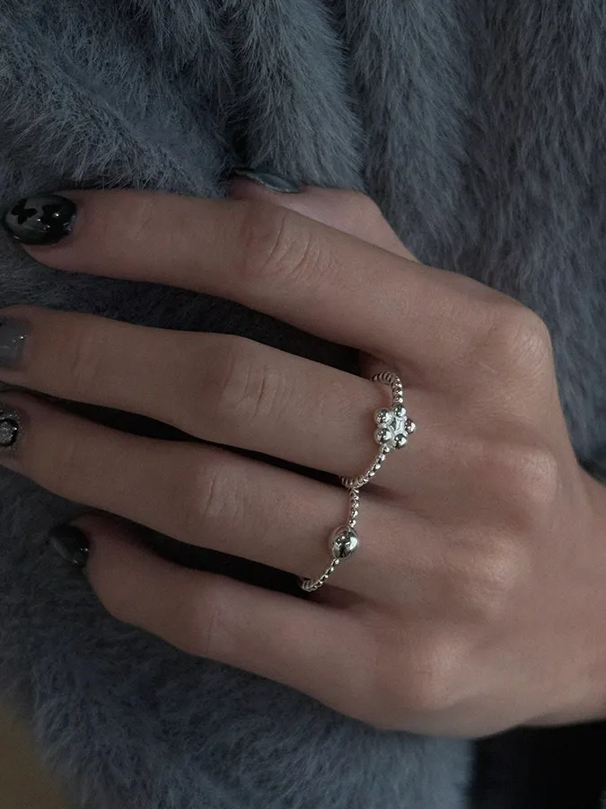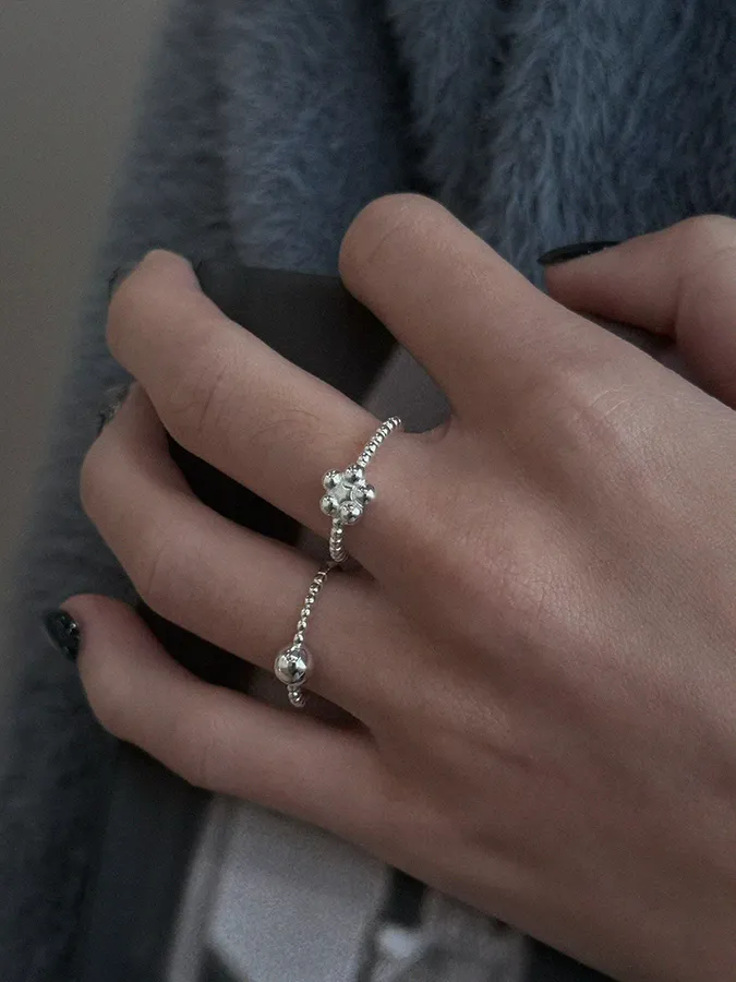 小珠小花圓珠|開口戒指【S925純銀】
