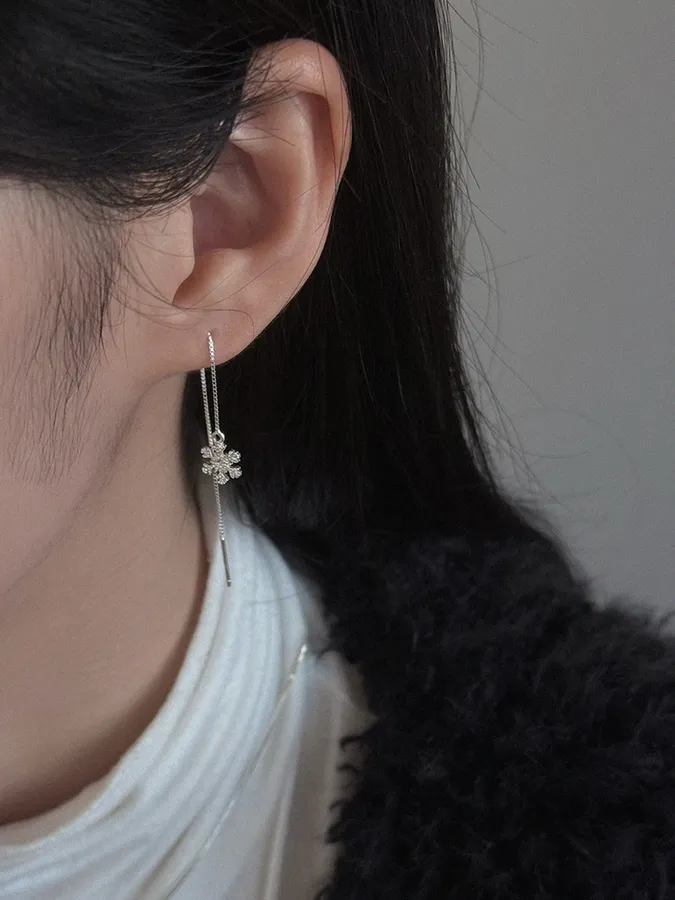 雪花細鏈|925銀耳環【S925純銀】