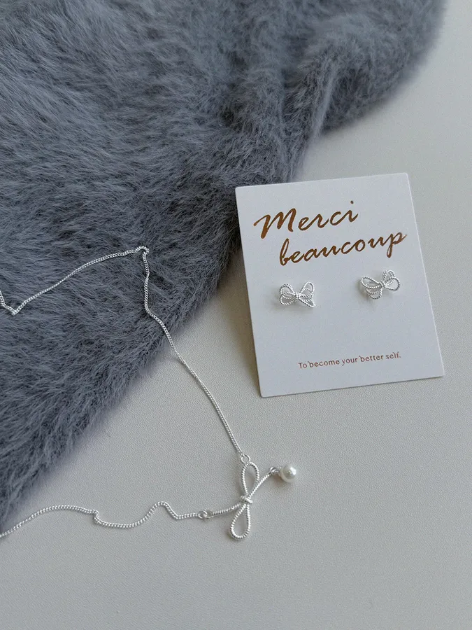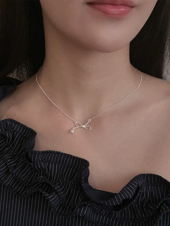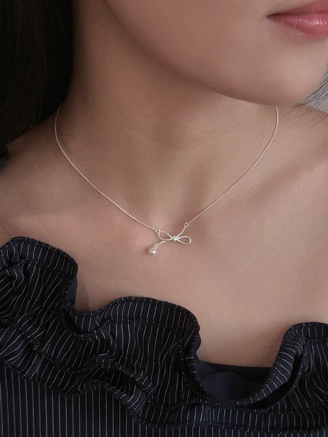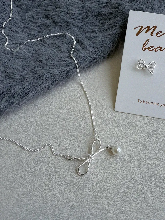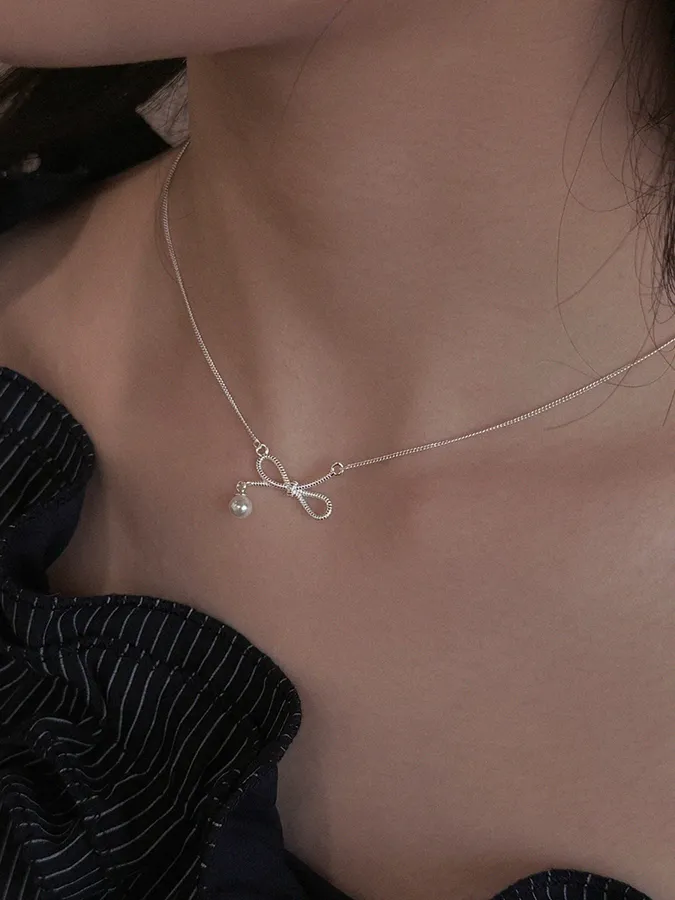 蝴蝶結垂落珍珠|鎖骨項鍊【S925純銀】