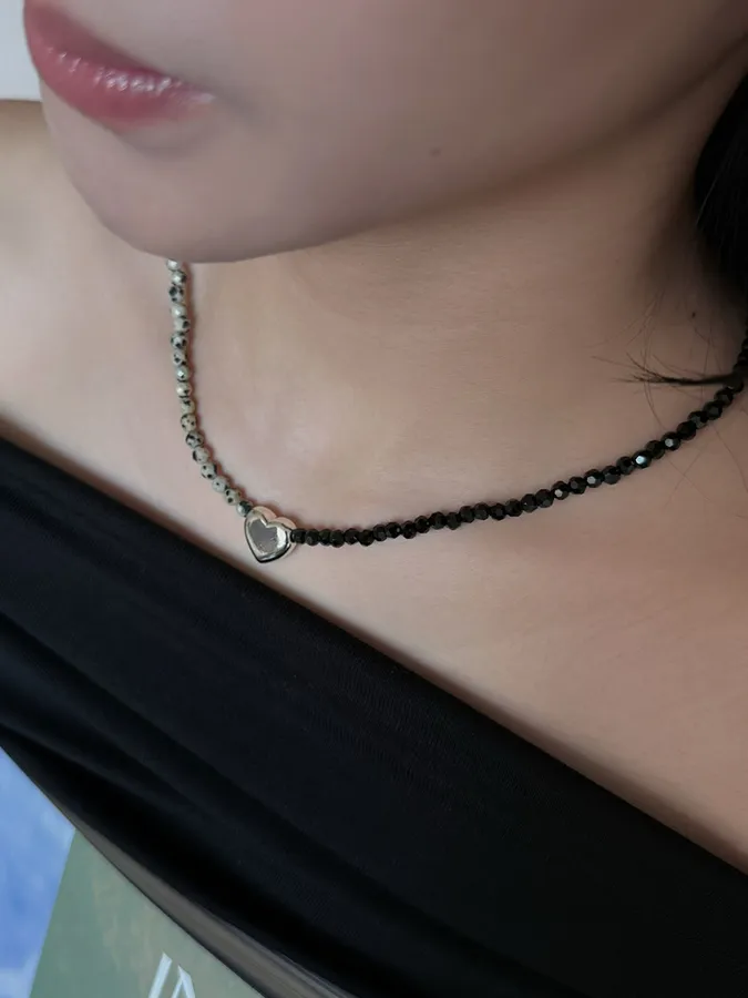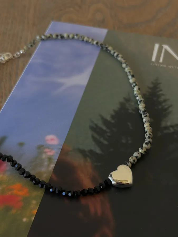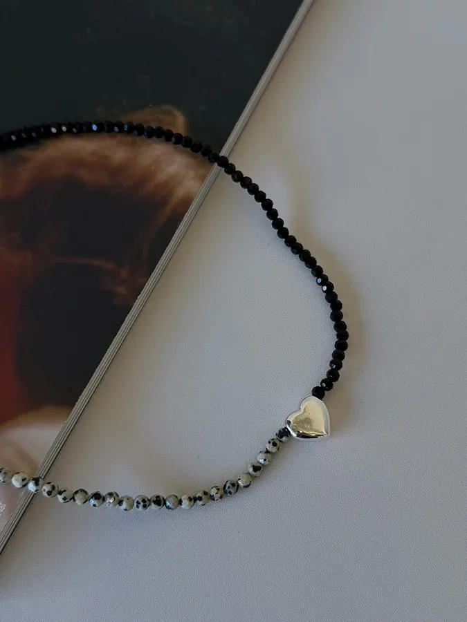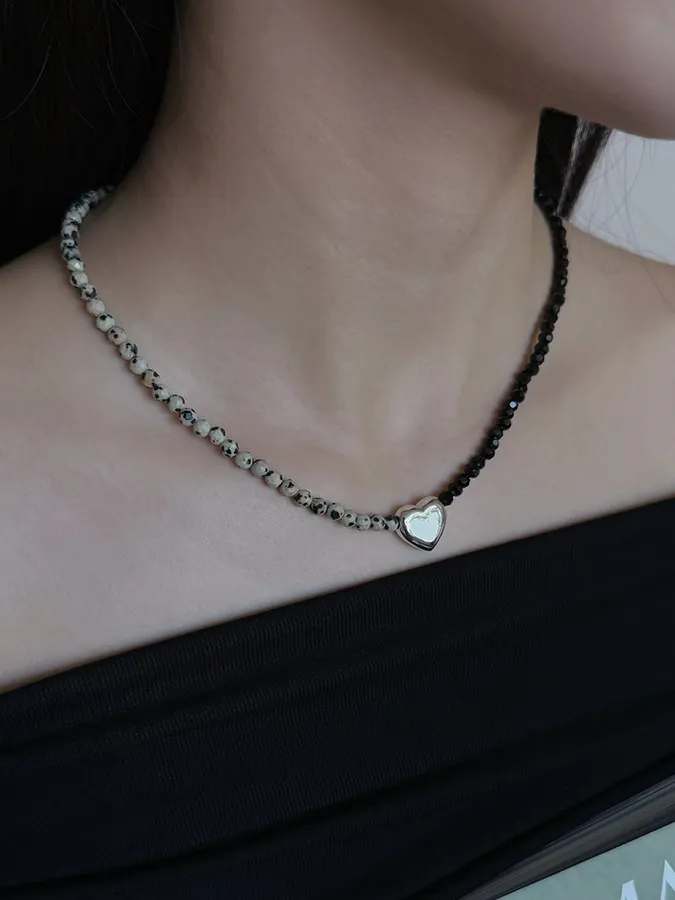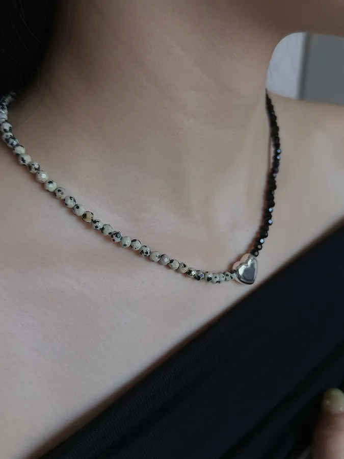 酷甜天然石不對稱愛心|鎖骨項鍊