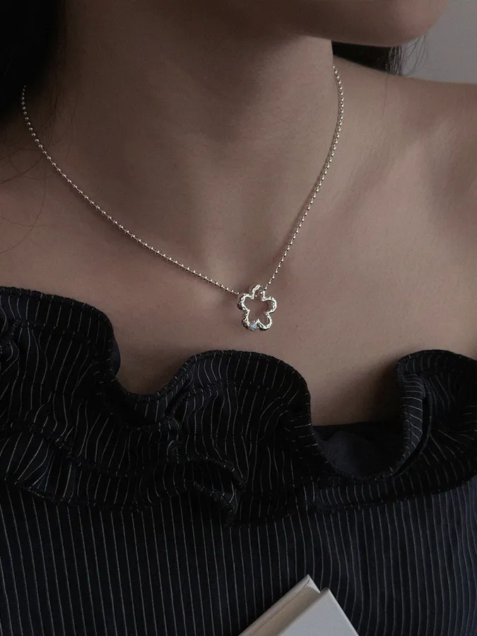 鏤空小花珠珠|鎖骨項鍊【S925純銀】