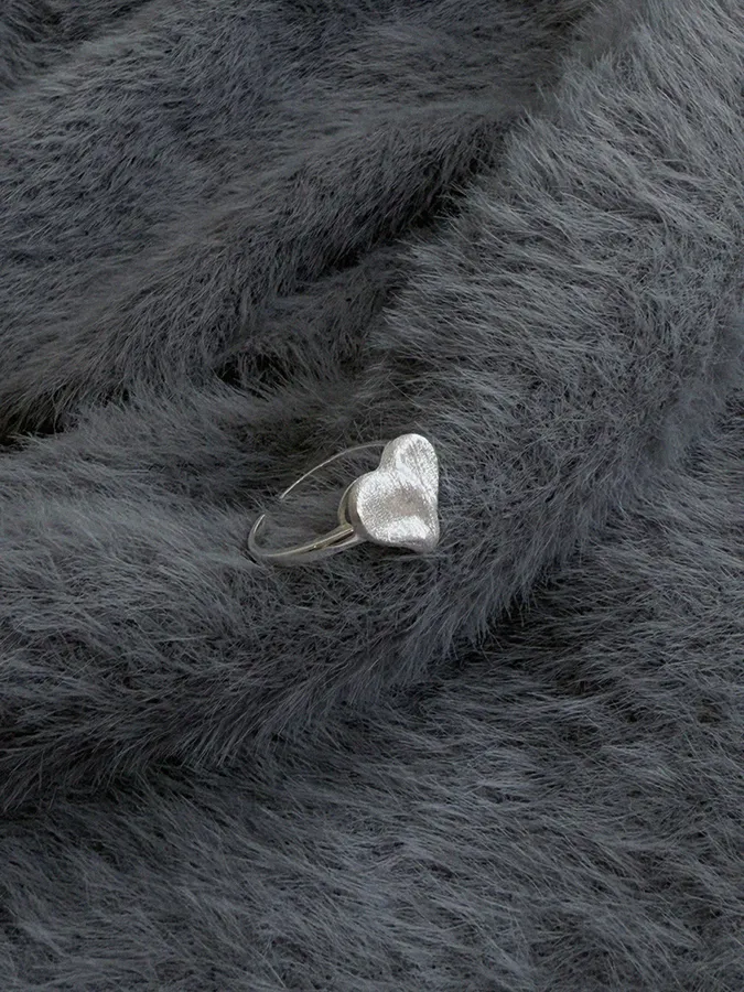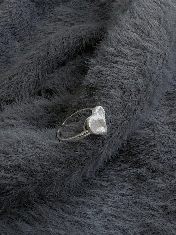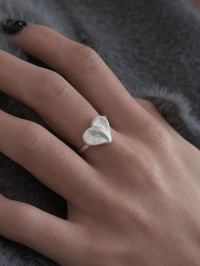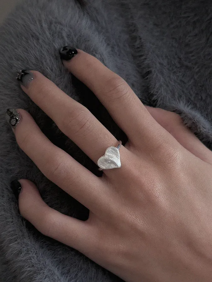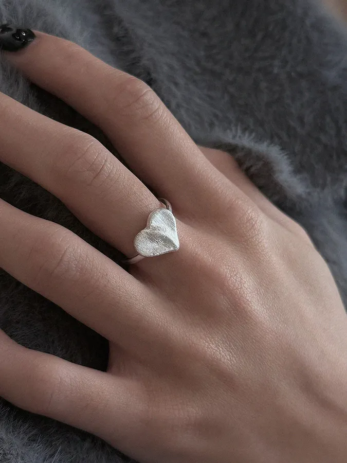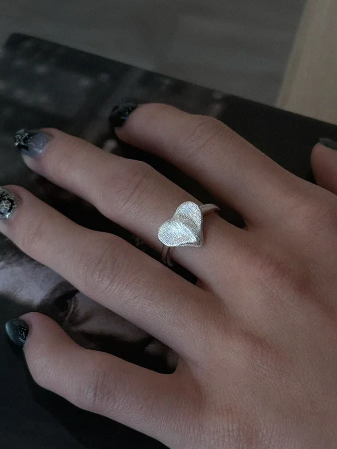 霧面心形|開口戒指【S925純銀】