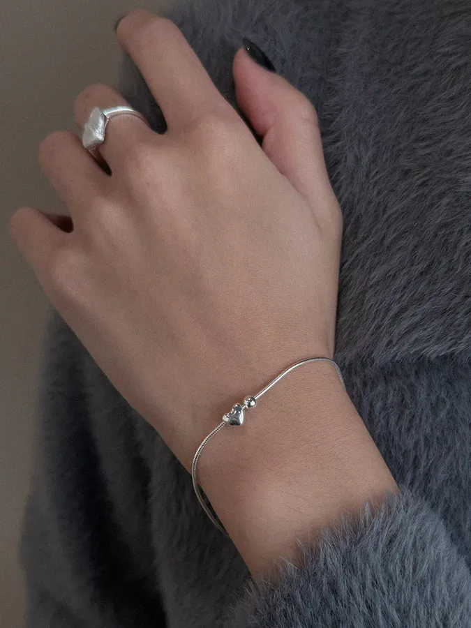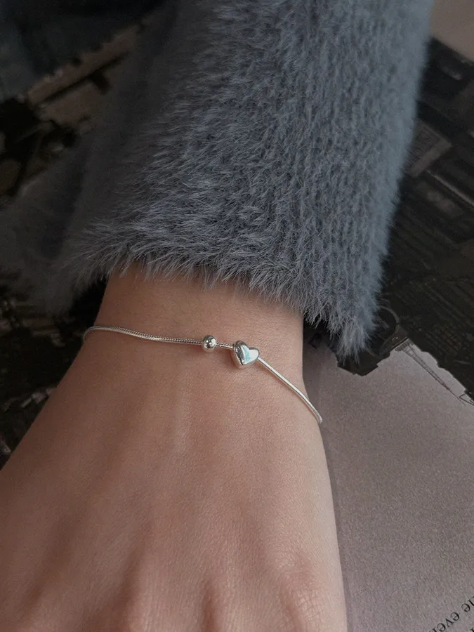 愛心銀珠蛇骨|手鍊【S925純銀】