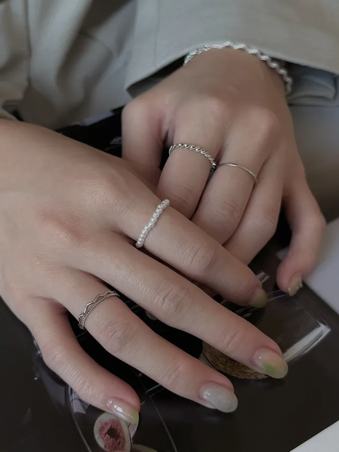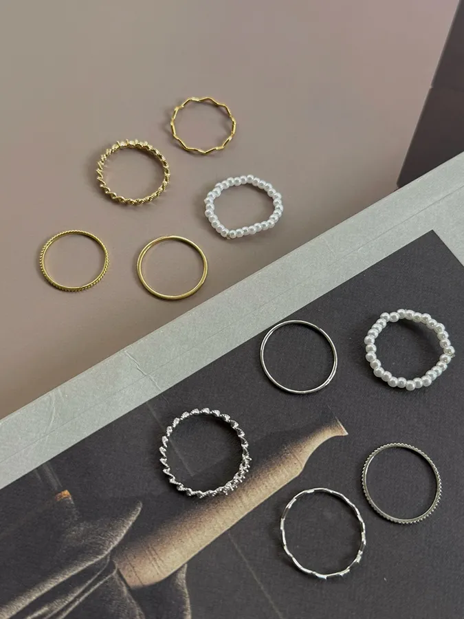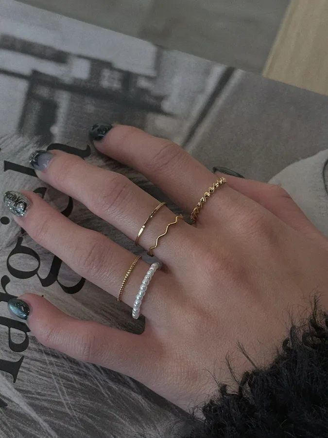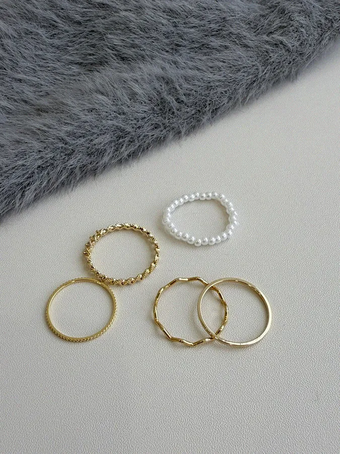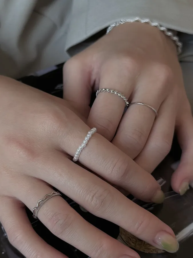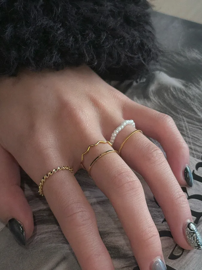 韓-珍珠紐繩|戒指(五入組)