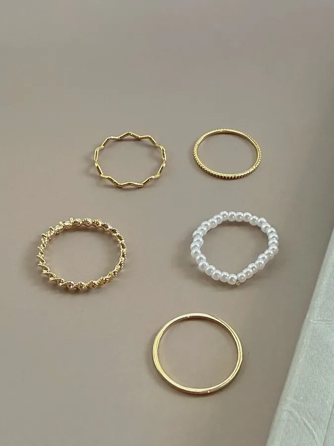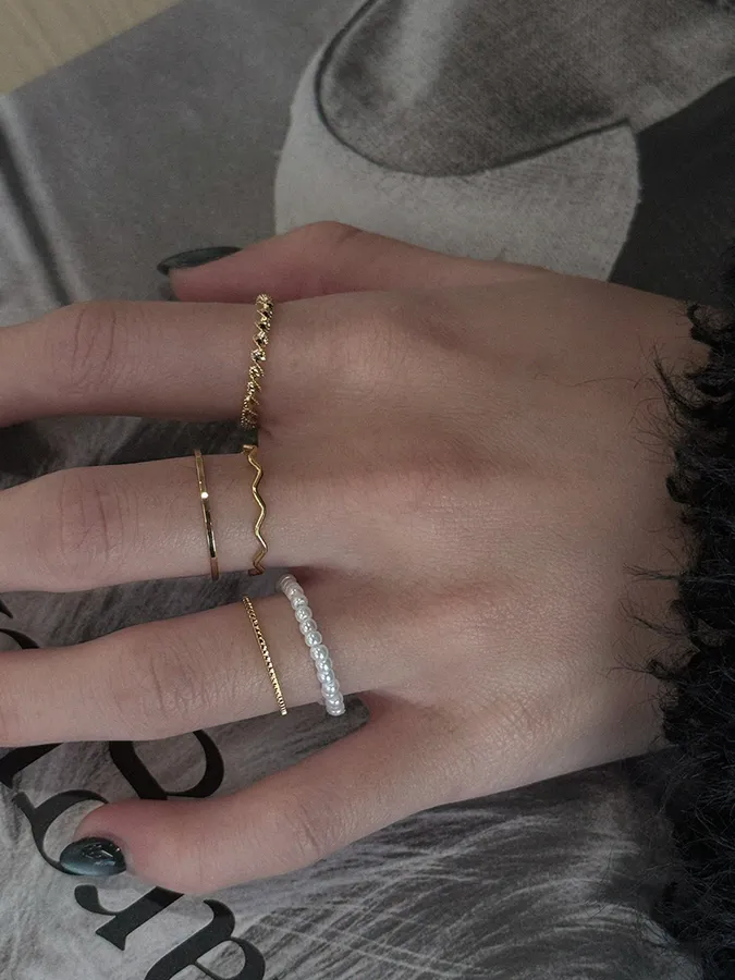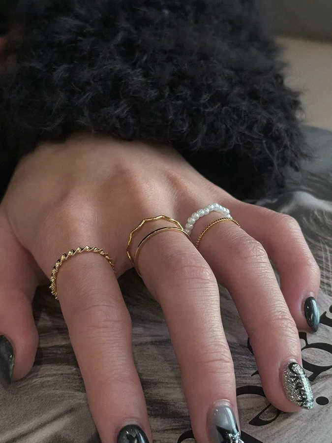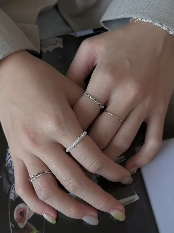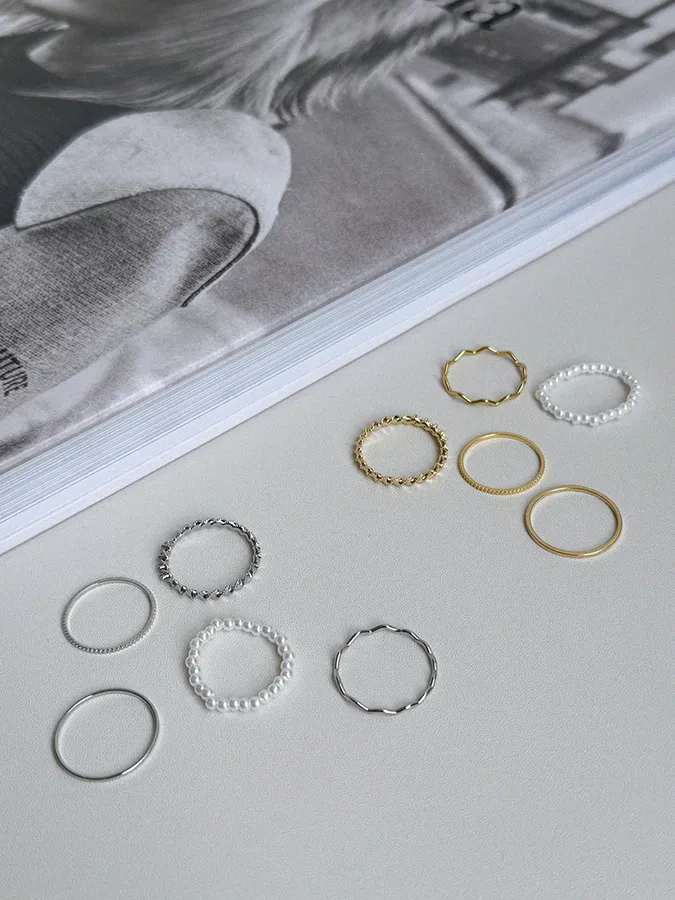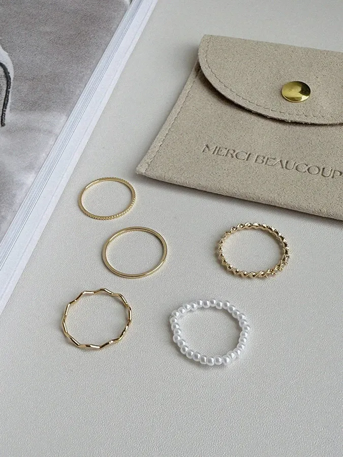韓-珍珠紐繩|戒指(五入組)