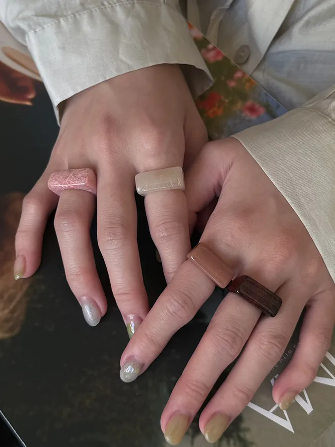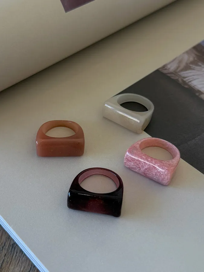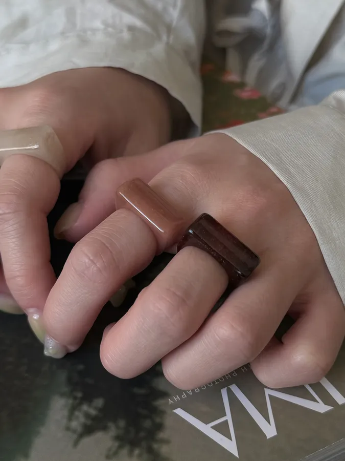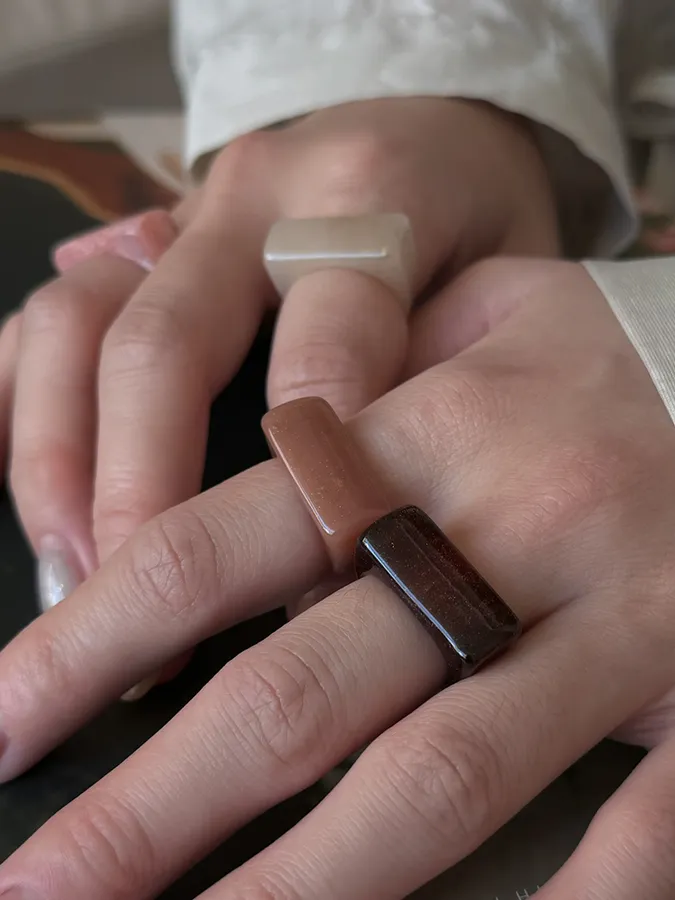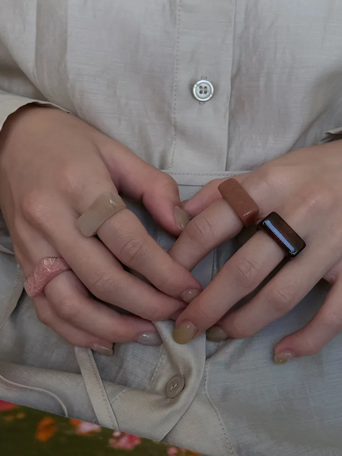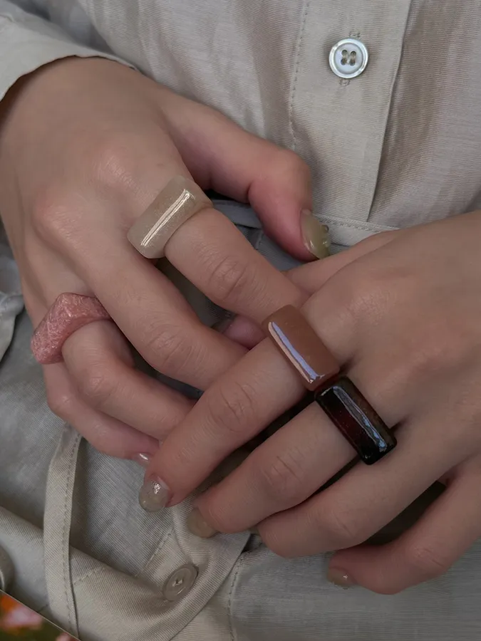 採用光澤壓克力材質,每一枚戒指皆為壓製成型,