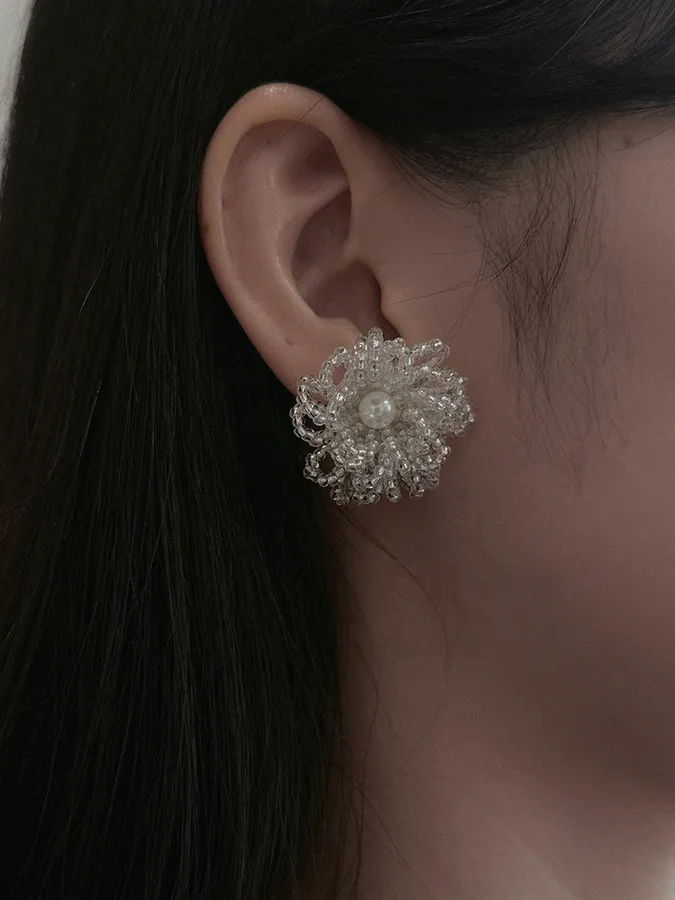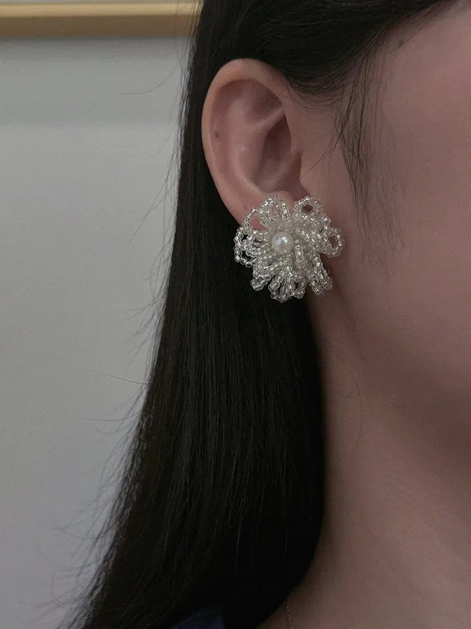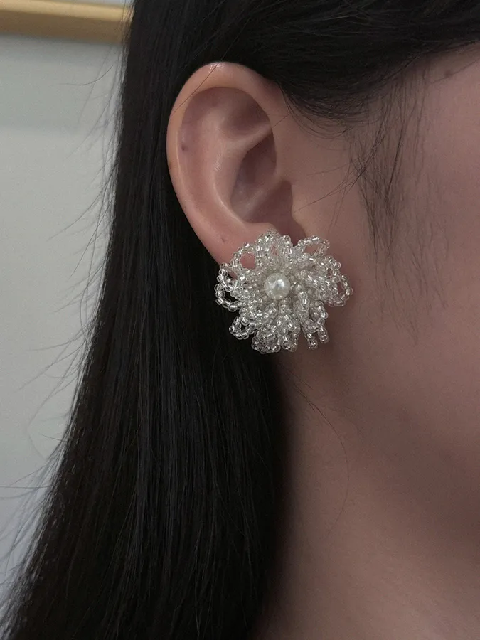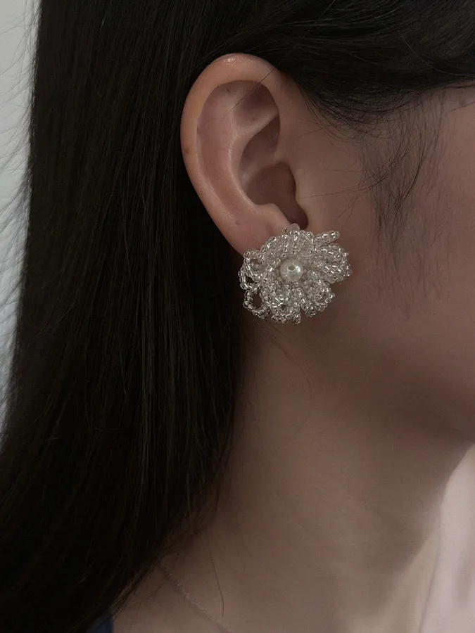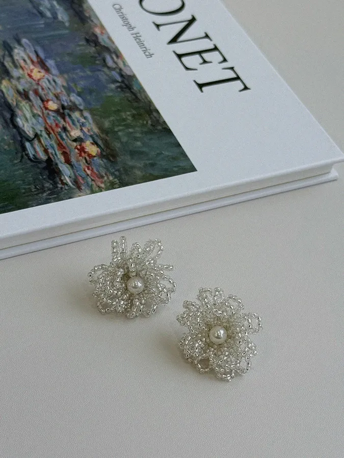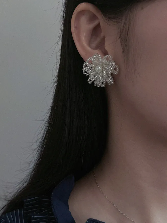 韓-立體花瓣珍珠|925銀針耳環