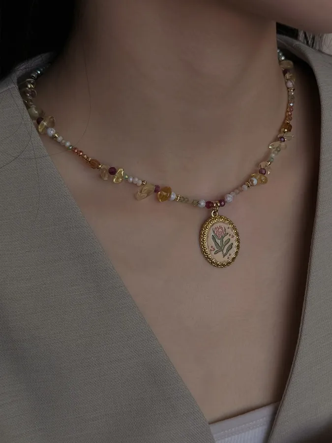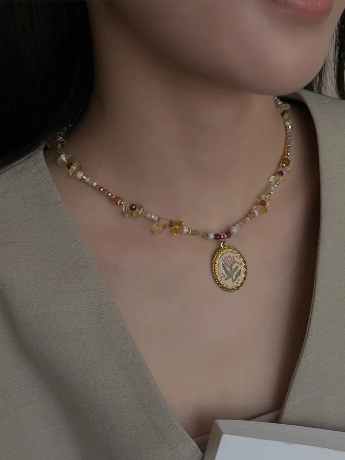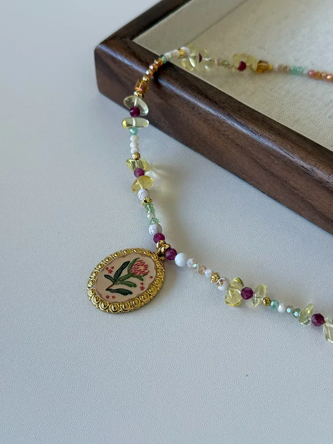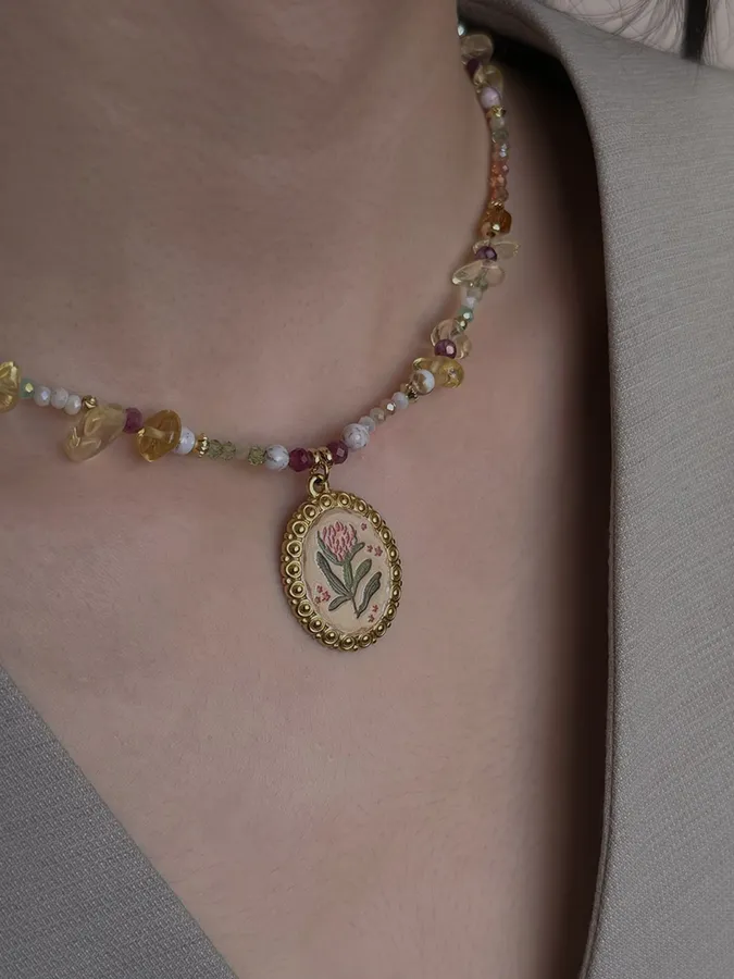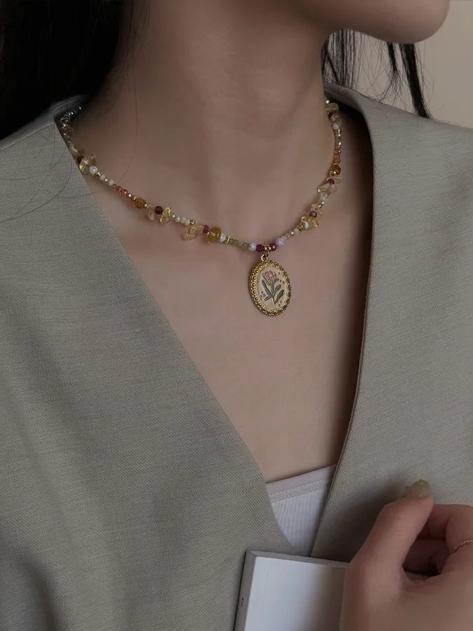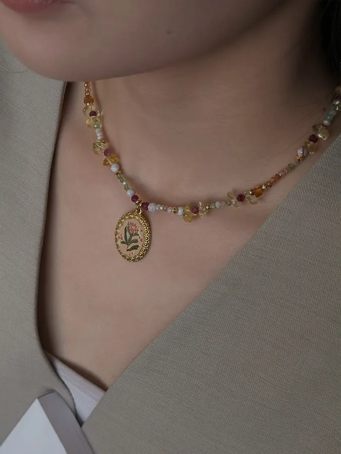 花朵吊墜天然石|鎖骨項鍊