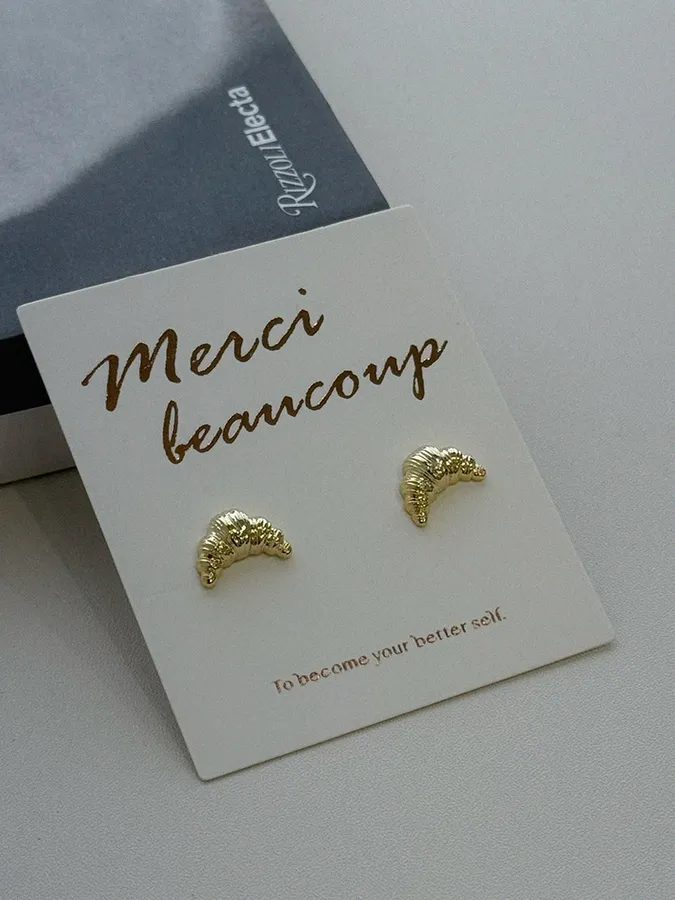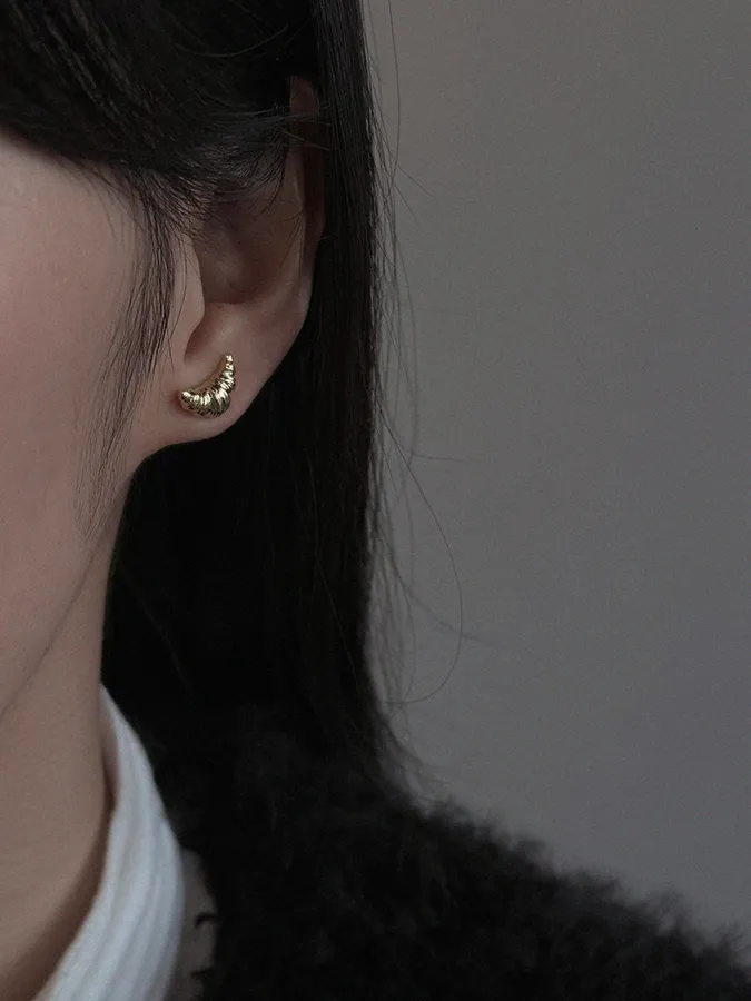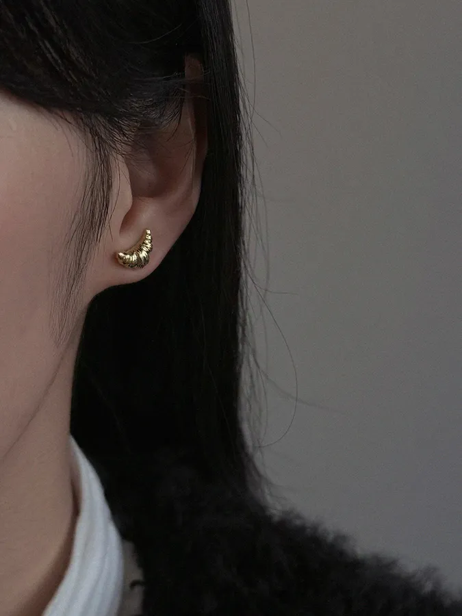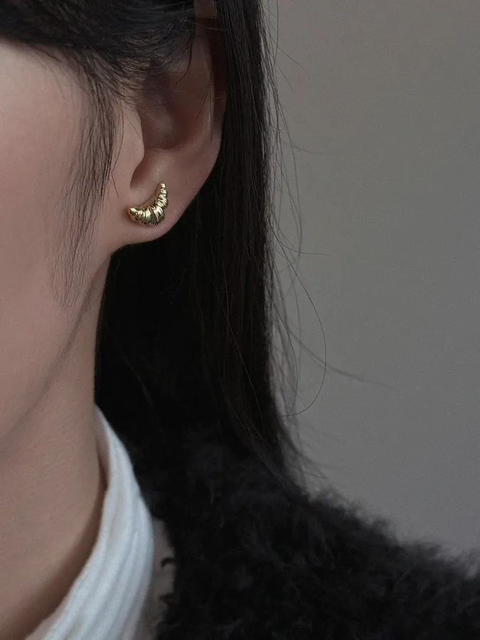 韓-牛角麵包|925銀耳環【S925純銀】