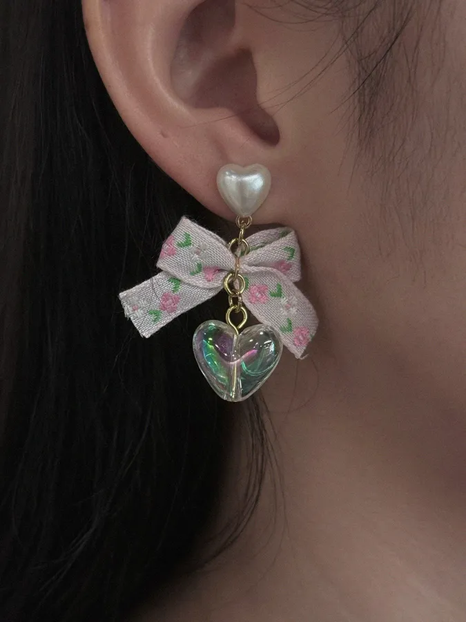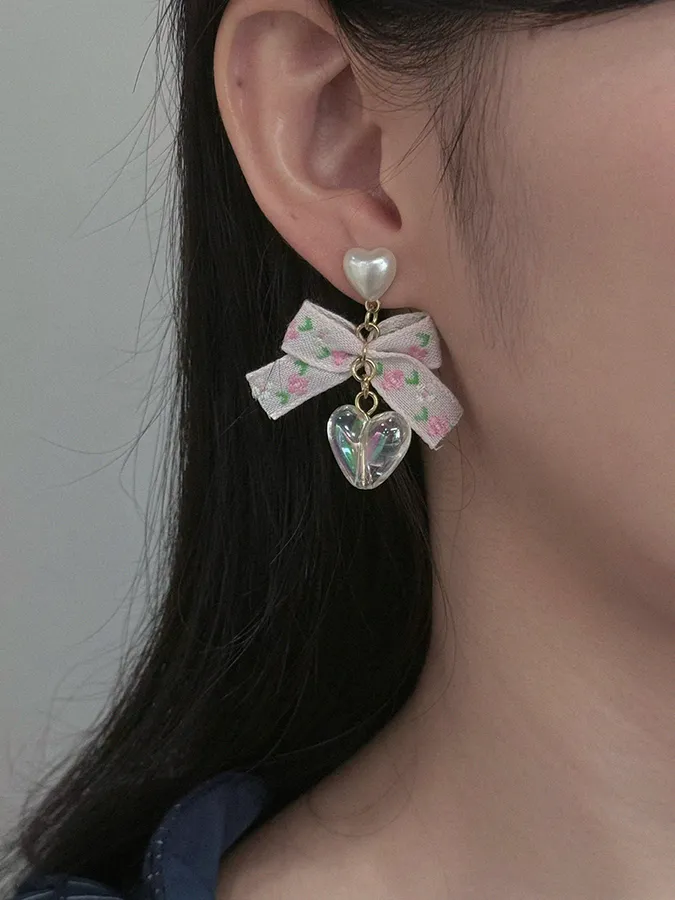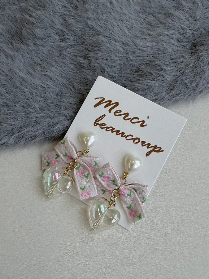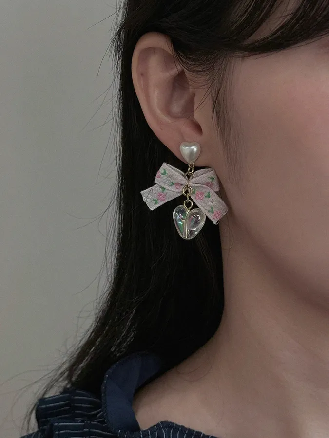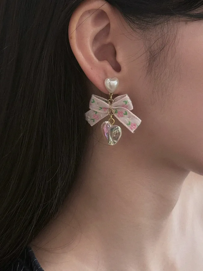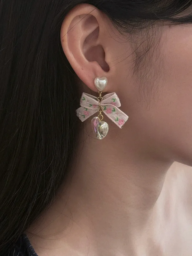 韓-花緞帶愛心|耳環